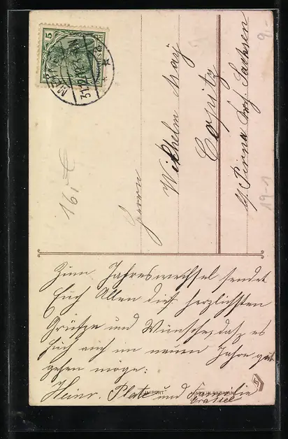 gelaufen 1912, Klebe- und Papierrest unten li., Eckknicke li., guter Zustand