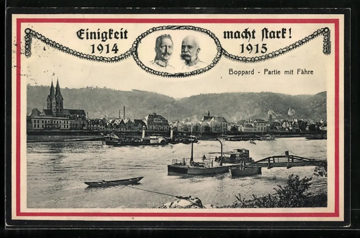 AK Boppard, Partie mit Fähre, Kaiser Wilhelm II., Kaiser Franz Josef I.