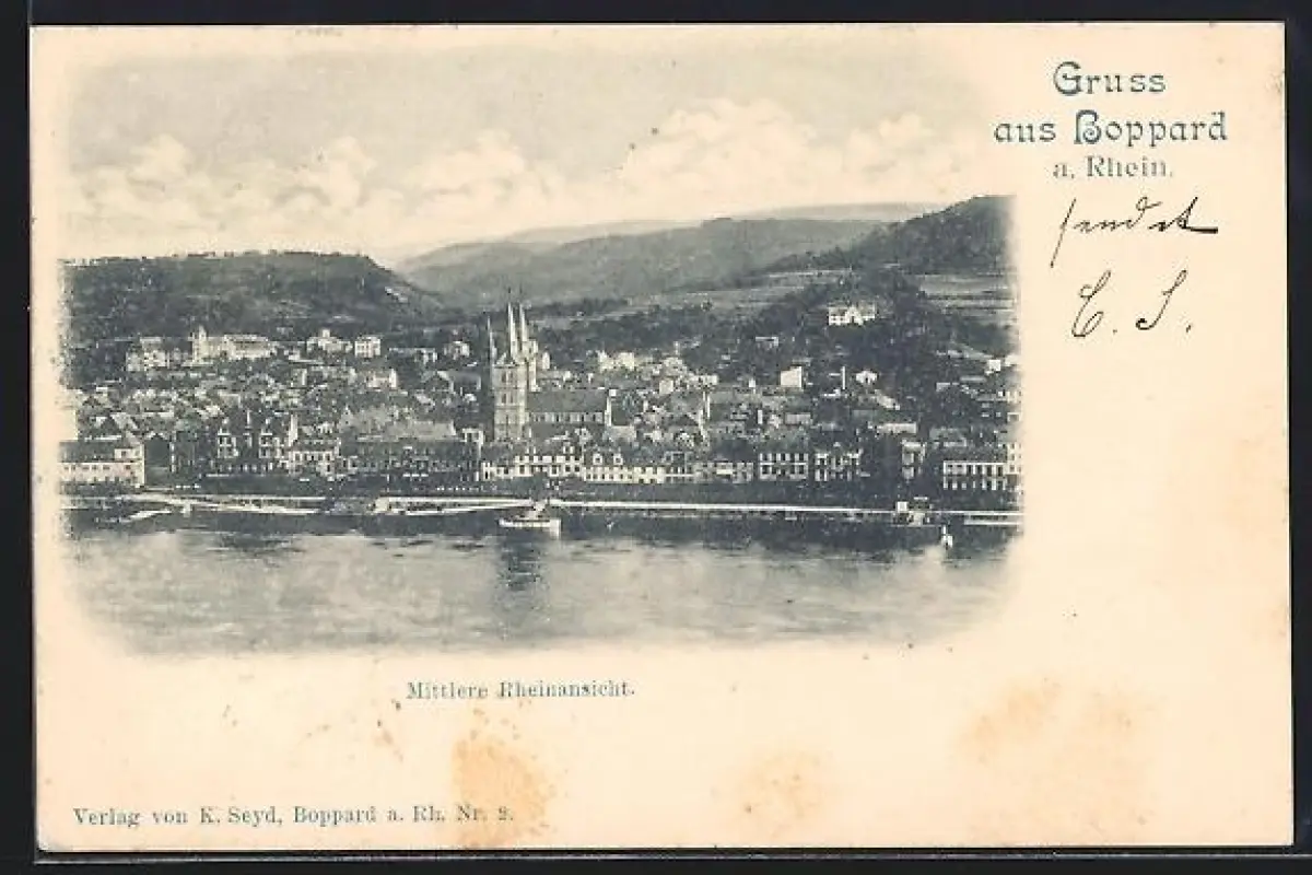 AK Boppard /Rhein, Mittlere Rheinansicht mit Ort