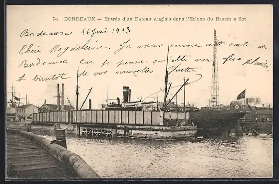 AK Bordeaux, Entrée d`un bateau anglais dans l`écluse du bassin à flot