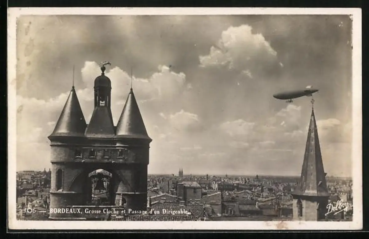 AK Bordeaux, Grosse Cloche et Paaage d`un Dirigeable, Zeppelin