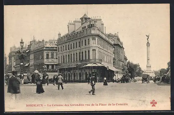 AK Bordeaux, La Colonne des Girondins vue de la Place de la Comédie