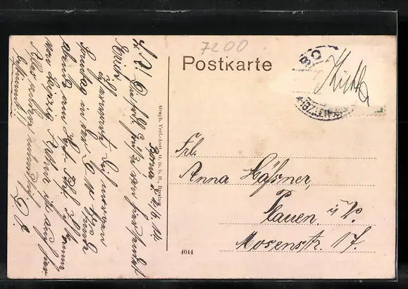 alte Ansichtskarte, gelaufen, Briefmarke entfernt, guter Zustand