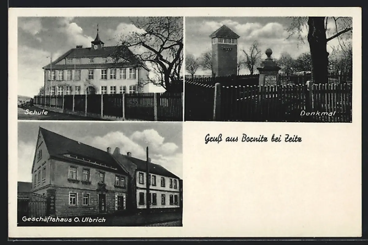 AK Bornitz bei Zeitz, GeschäftshausO. Ulbrich, Schule, Denkmal
