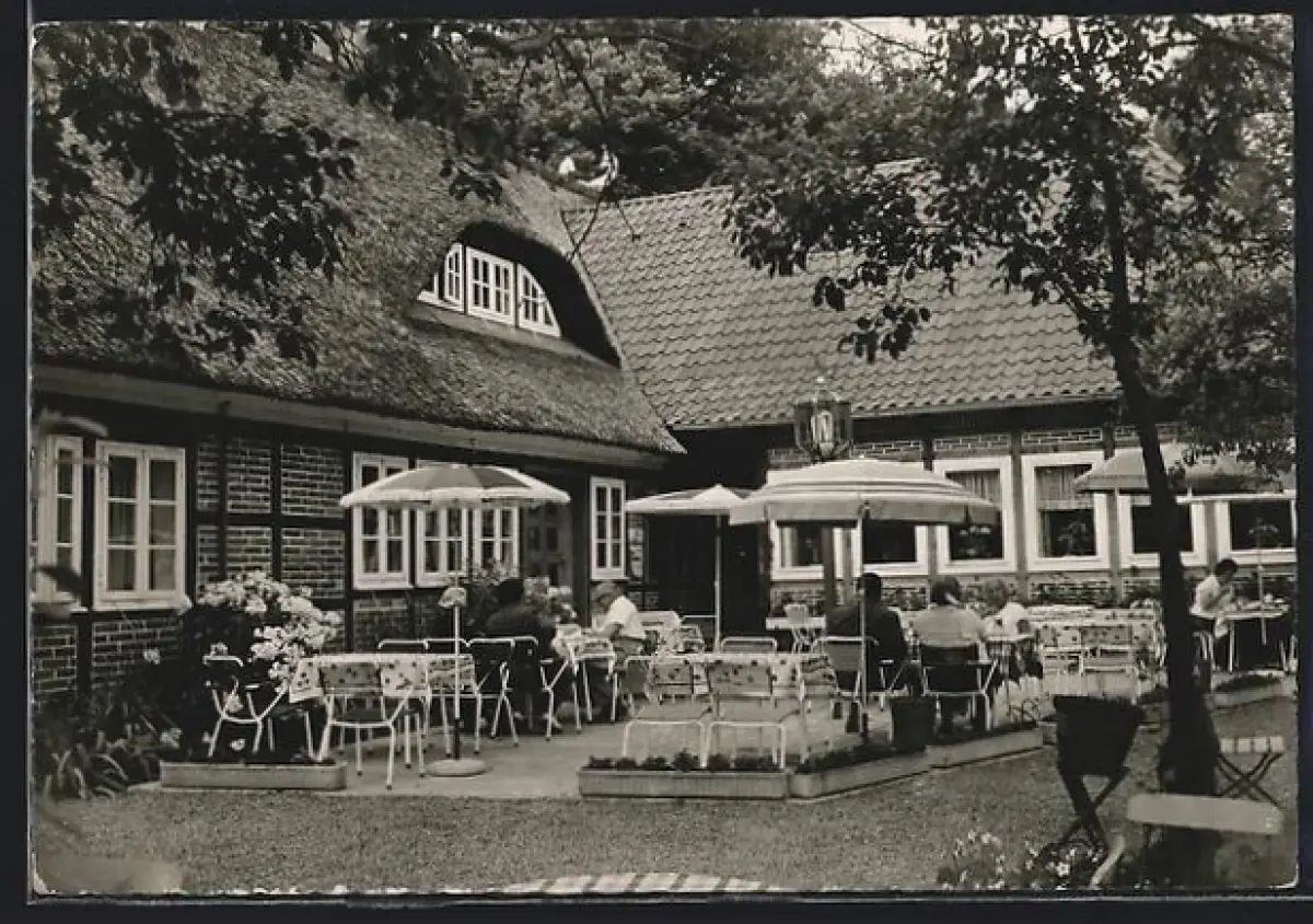 AK Borstel / Bispingen, Gasthaus u. Pension Lönsklause, Aussenansicht mit Gästen