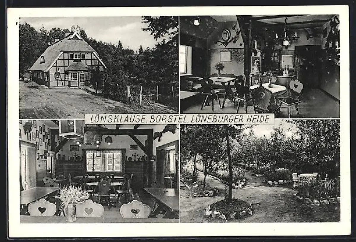 AK Borstel /Soltau, Gasthof Lönsklause, Gasträume, Garten