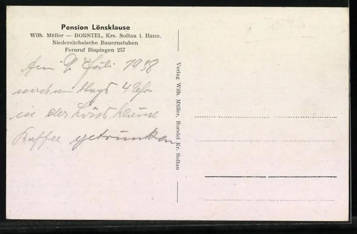 AK Borstel /Soltau, Interieur Pension Lönsklause, Inh. Wilh. Müller