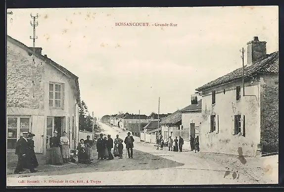 AK Bossancourt, Grande-Rue animée avec passants et bâtiments anciens