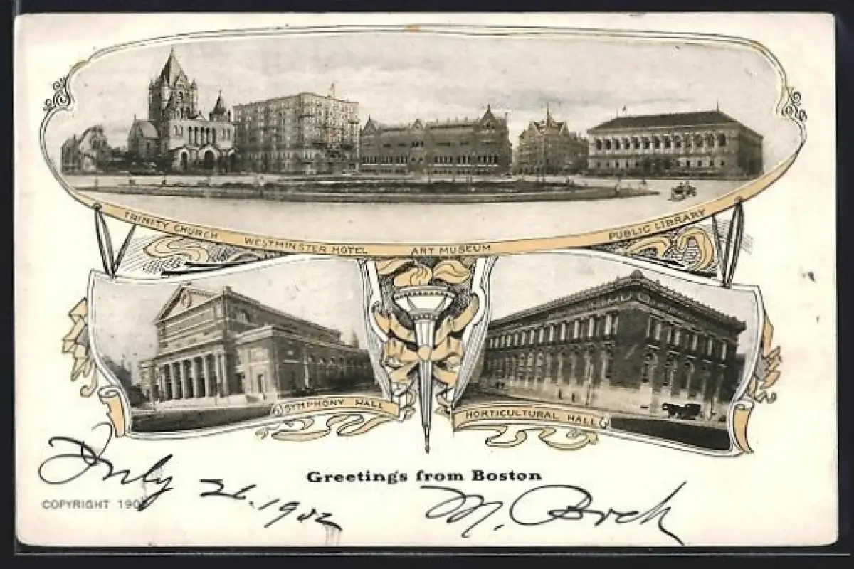 AK Boston, MA, Trinity Church, Westminster Hotel, Art Museum, Public Library, Symphony Hall, Horticultural Hall