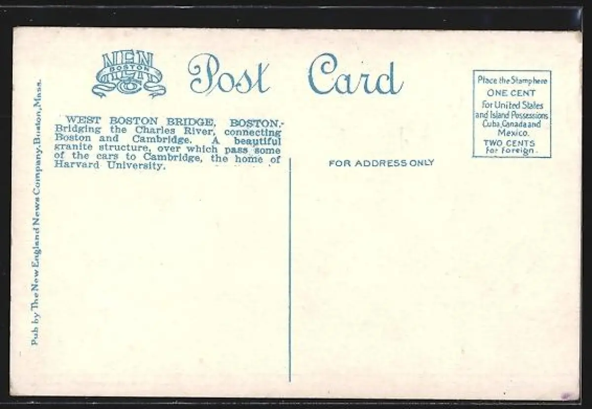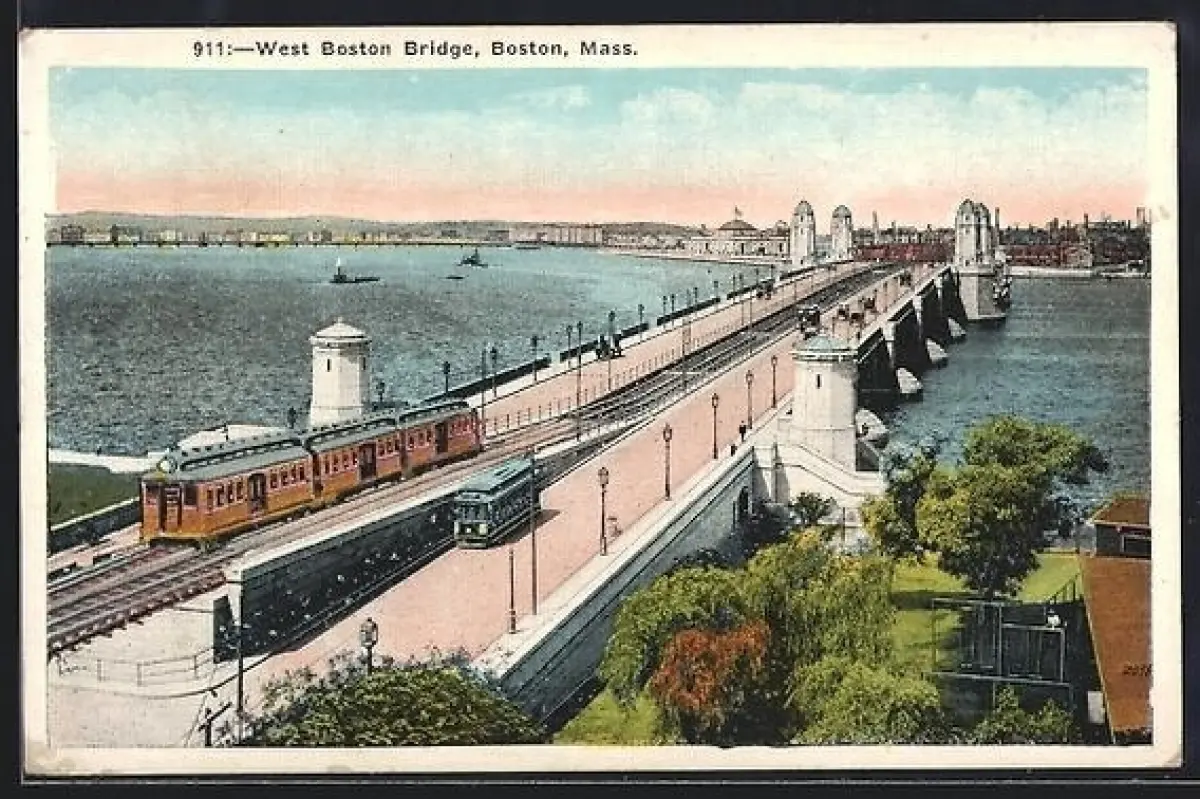 AK Boston, Mass., West Boston Bridge, Strassenbahn