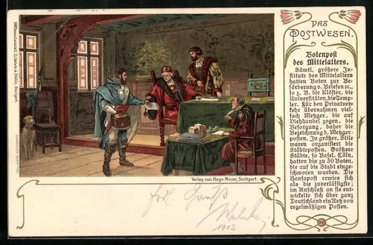 AK Botenpost im Mittelalter, Bote überreicht einen Brief