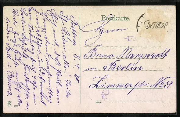 alte Ansichtskarte, gelaufen, Briefmarke entfernt, guter Zustand
