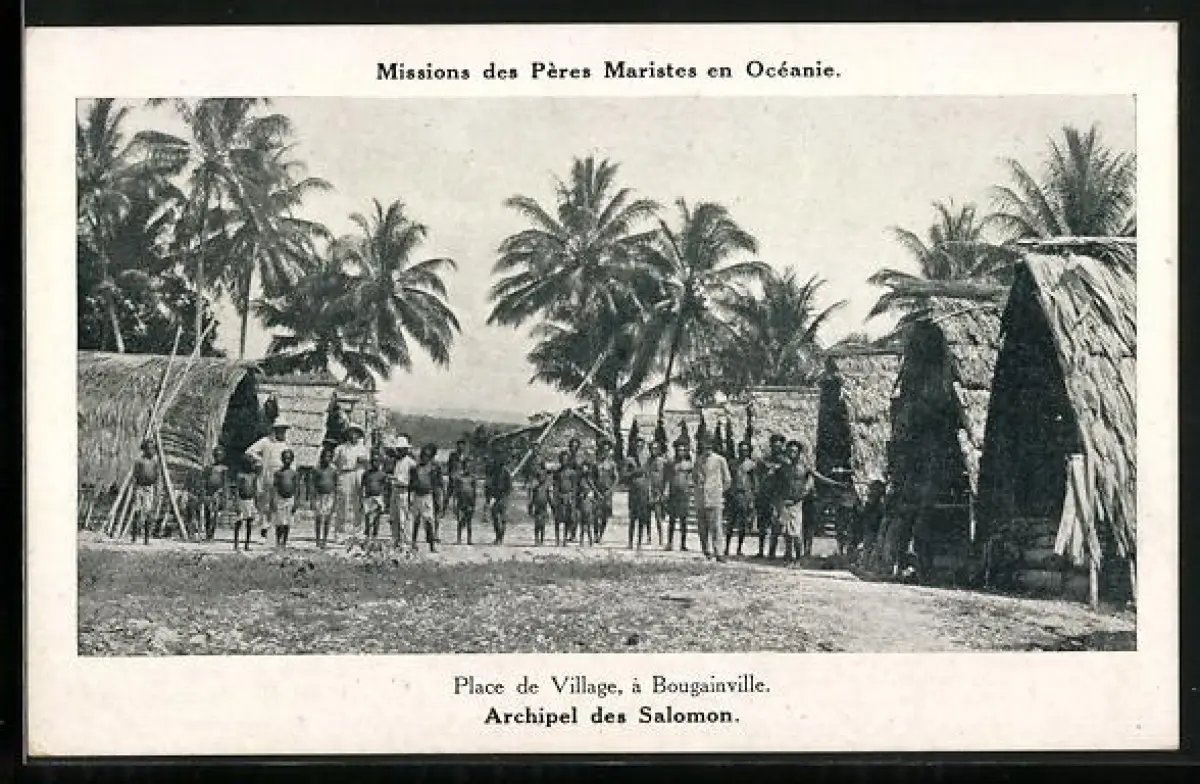 AK Bougainville, Place de Village, missions des Pères Maristes en Océanie
