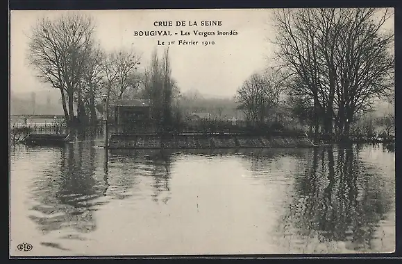 AK Bougival, Inondations de Janvier 1910, Les Vergers inondes