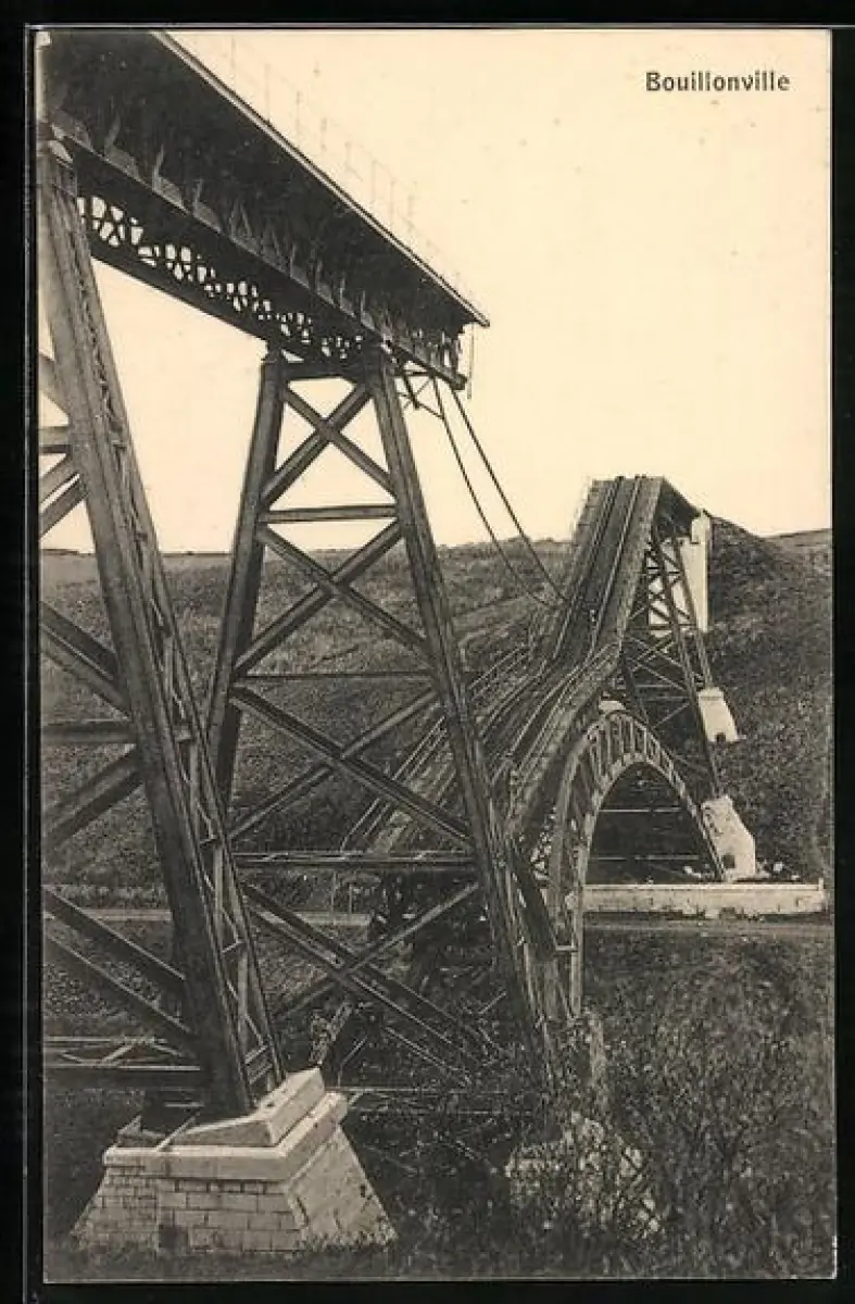 AK Bouillonville, Vue du pont endommagé dans le paysage environnant