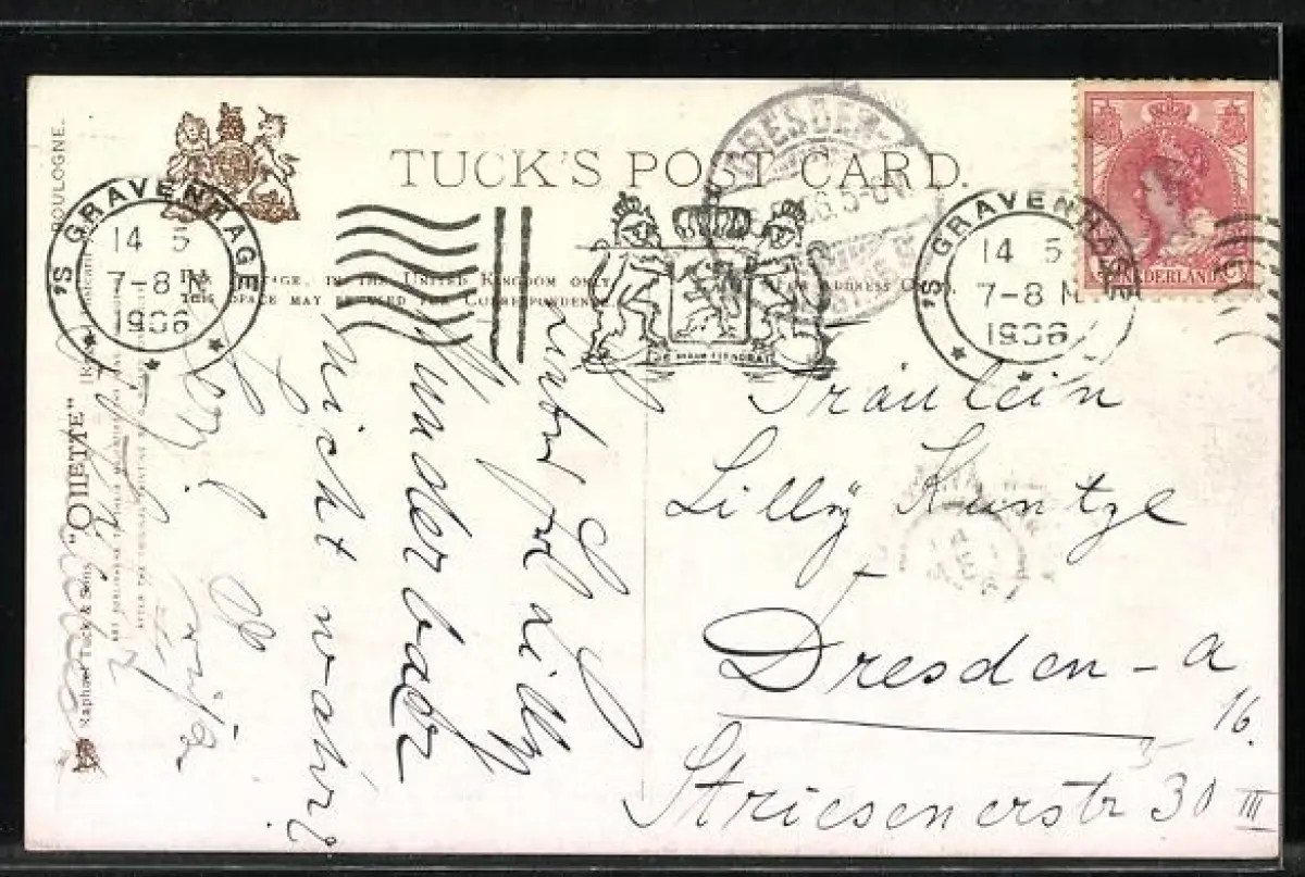 alte Ansichtskarte, gelaufen 1906, Stempelspur, guter Zustand