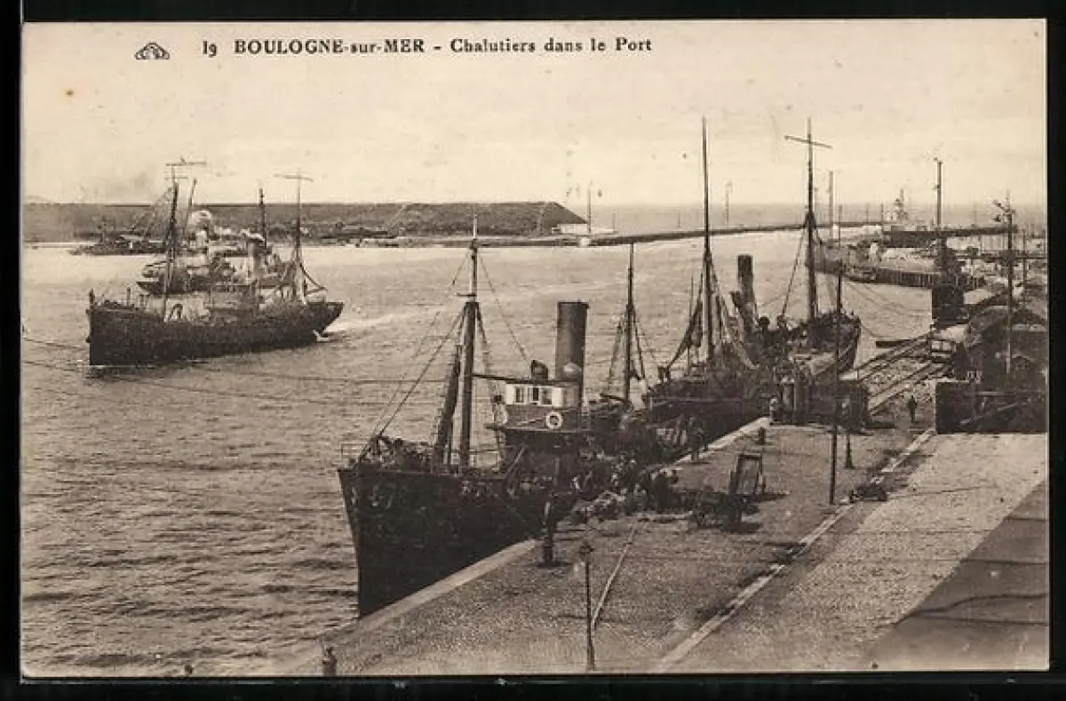 AK Boulogne-sur-Mer, Chalutiers dans le Port