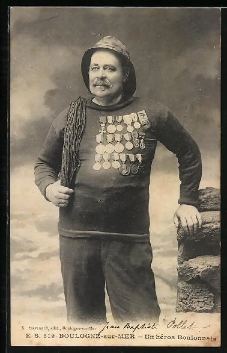 AK Boulogne-sur-Mer, Un héros Boulonnais, Mann der Seenotrettung mit Orden