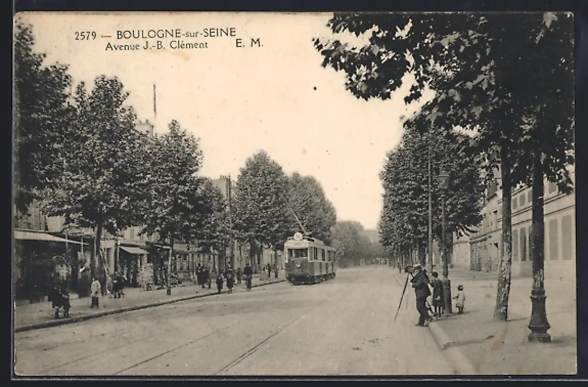 AK Boulogne-sur-Seine, Avenue J.-B. Clément, Strassenbahn