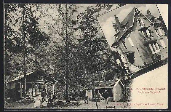 AK Bourbonne-les-Bains, La Source Maynard et pavillon dans la forêt
