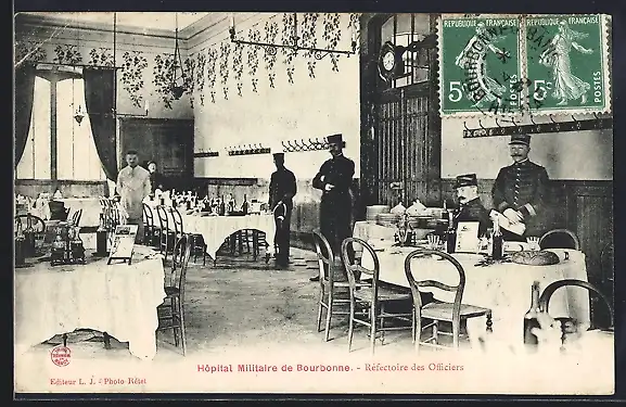 AK Bourbonne-les-Bains, Réfectoire des Officiers à l`Hôpital Militaire