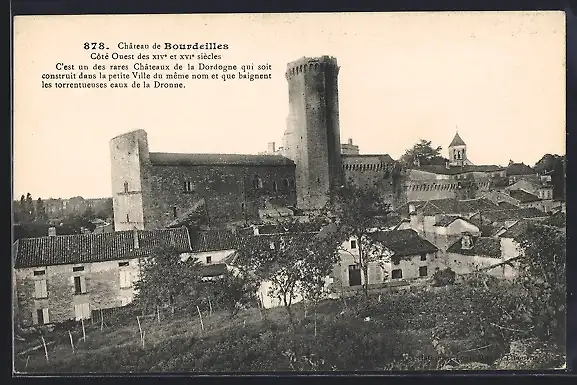 AK Bourdeilles, Château des XIVe et XVe siècles et vue du village environnant