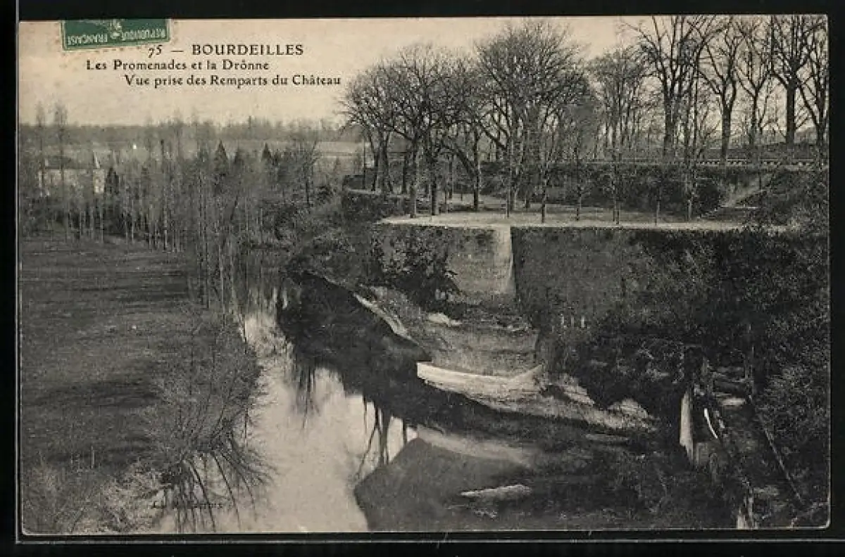 AK Bourdeilles, Les Promenades et la Dronne, vue prise des Remparts du Château