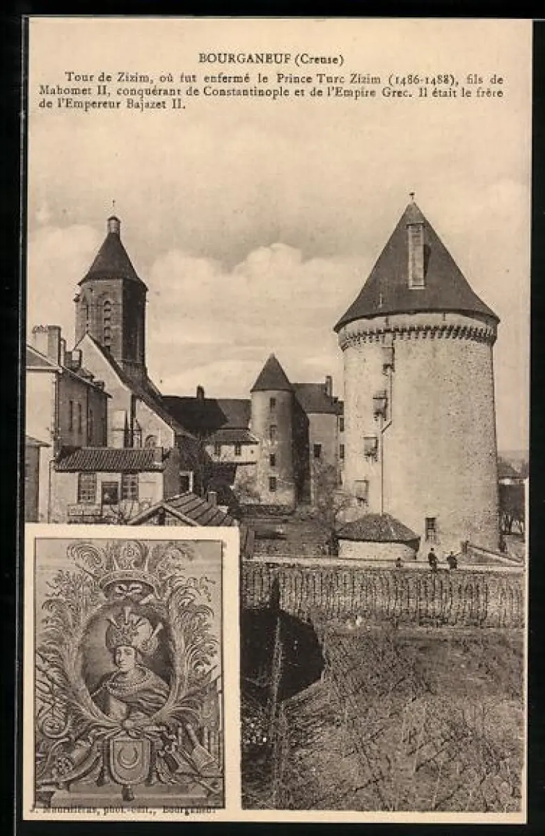 AK Bourganeuf /Creuse, Tour de Zizim et portrait du prince Tzer Zizim