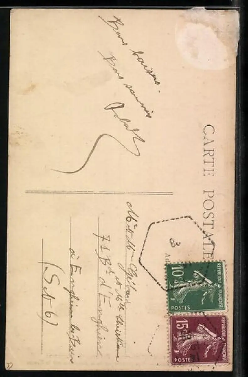 alte Ansichtskarte, gelaufen, rückseitig Klebe- und Papierreste, guter Zustand