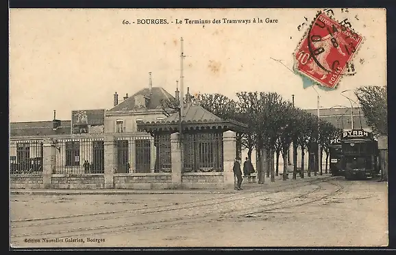 AK Bourges, Le Terminus des Tramways a la Gare, Strassenbahn