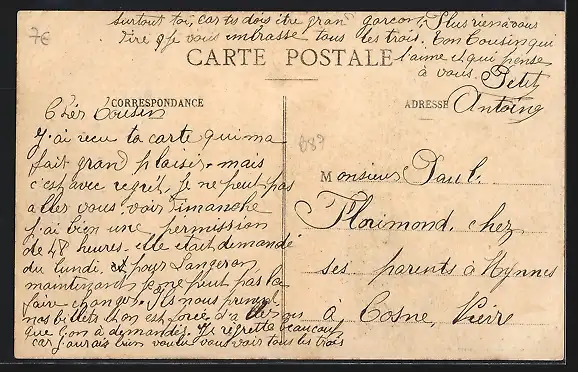 Personenbezogene Daten auf der Rückseite der Karte wurden durch blauen Textmarker unkenntlich gemacht. Die blauen Stellen sind auf die Vorderseite durchgeweicht und wirken sich negativ auf das Postkartenfoto aus