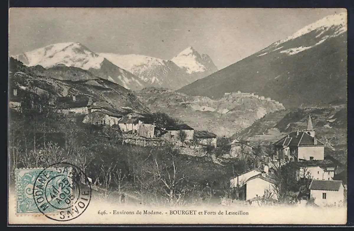AK Bourget, Forts de L`Esseillon avec vue sur les montagnes alpines