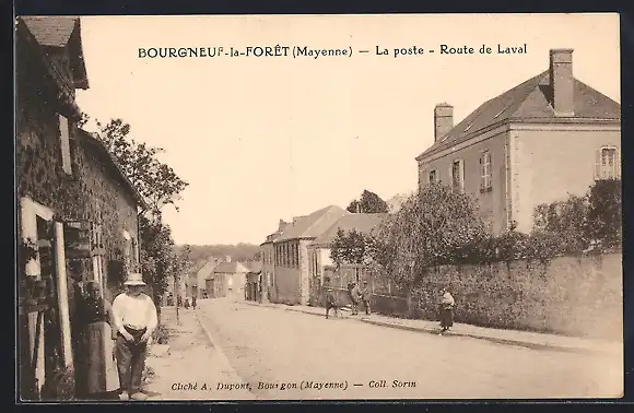 AK Bourgneuf-la-Forét, La Poste, Route de Laval