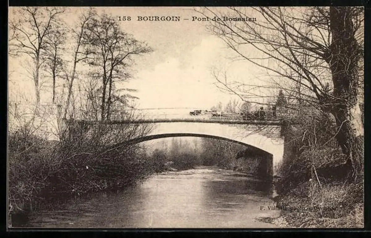 AK Bourgoin, Pont de Boussieu sur la rivière entourée d`arbres