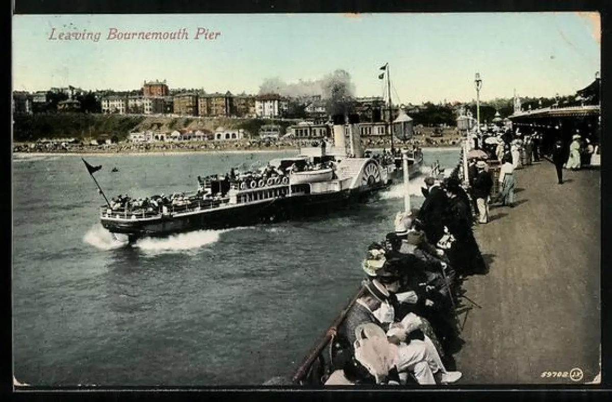 AK Bournemouth, Leaving Bournemouth Pier, sidewheel-steamer