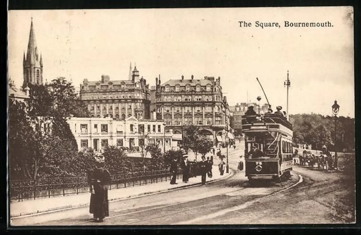 AK Bournemouth, The Square with Tramway, Strassenbahn