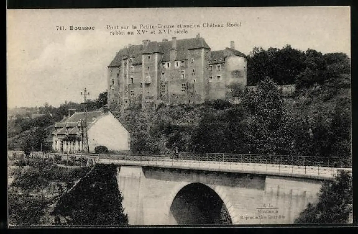 AK Boussac, Pont sur la Petite-Creuse et ancien Château féodal rebâti au XVe et XVIe siècle