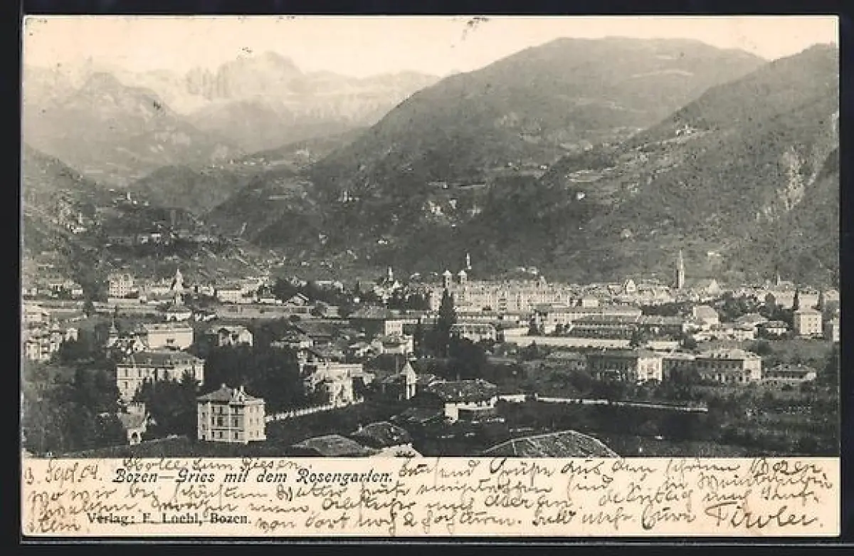 AK Bozen-Gries, Totalansicht mit dem Rosengarten