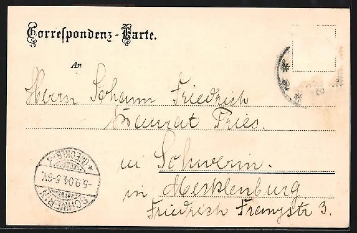 alte Ansichtskarte, gelaufen 1904, Briefmarke entfernt, rückseitig Oberflächenschaden, guter Zustand