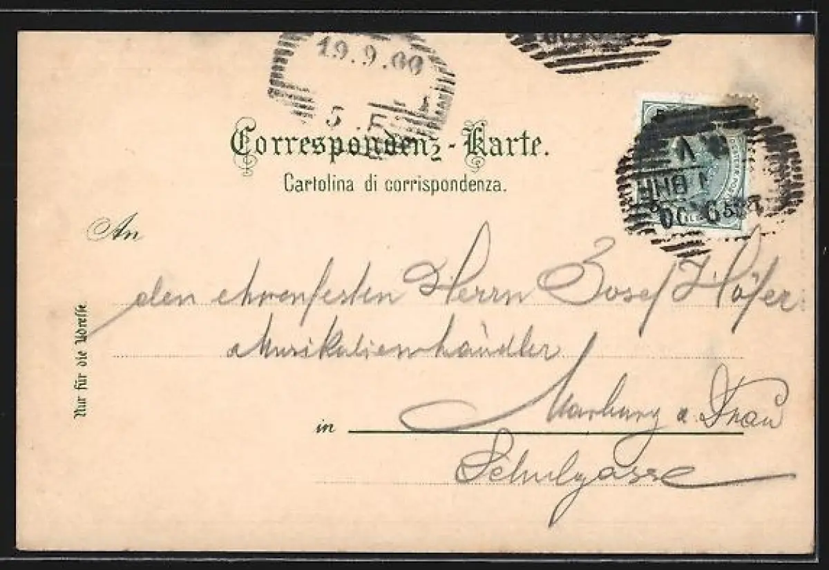 alte Ansichtskarte, gelaufen 1900, Stempelspur, guter Zustand