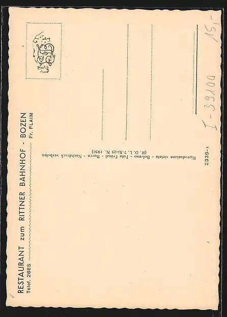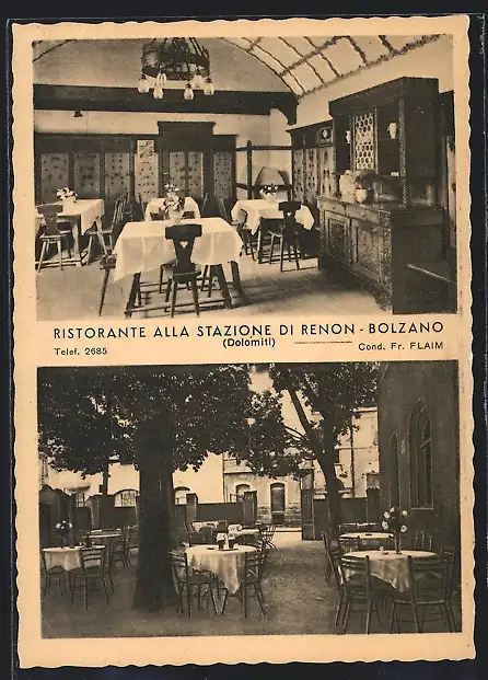AK Bozen, Restaurant zum Rittner Bahnhof v. Fr. Flaim