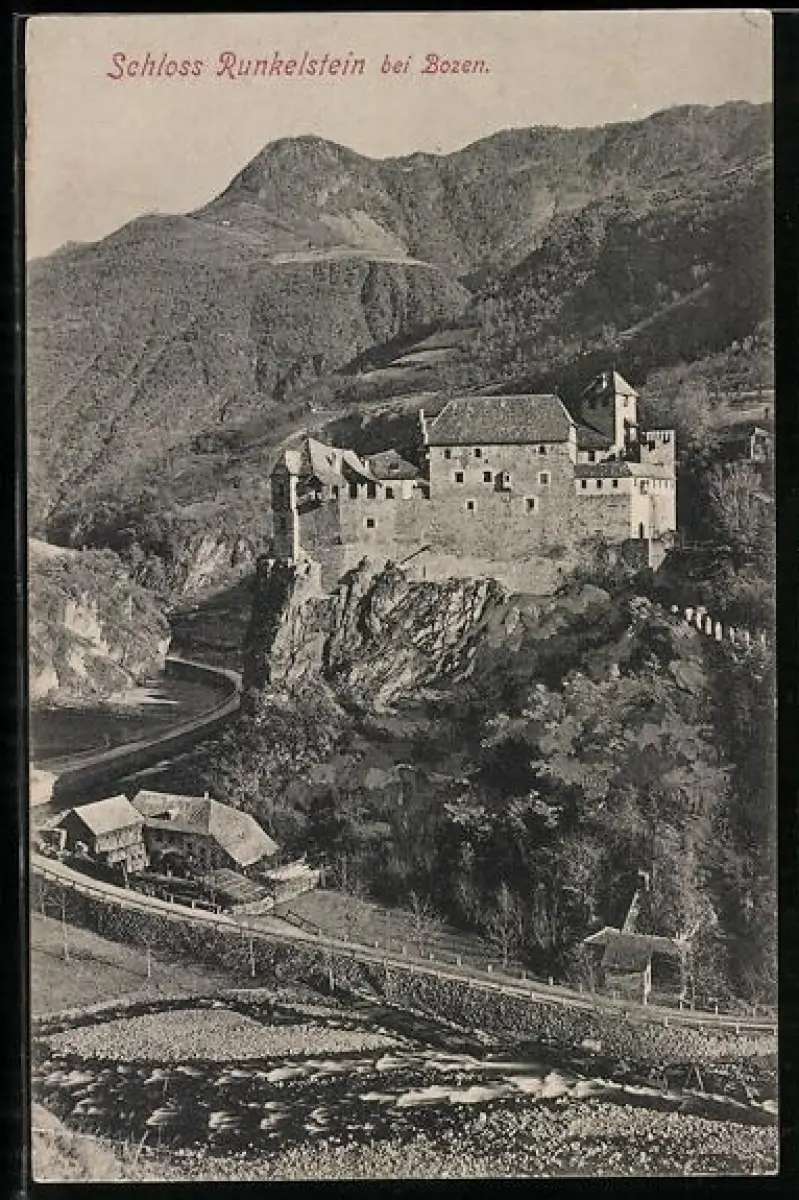 AK Bozen, Schloss Runkelstein mit Umgebung aus der Vogelschau