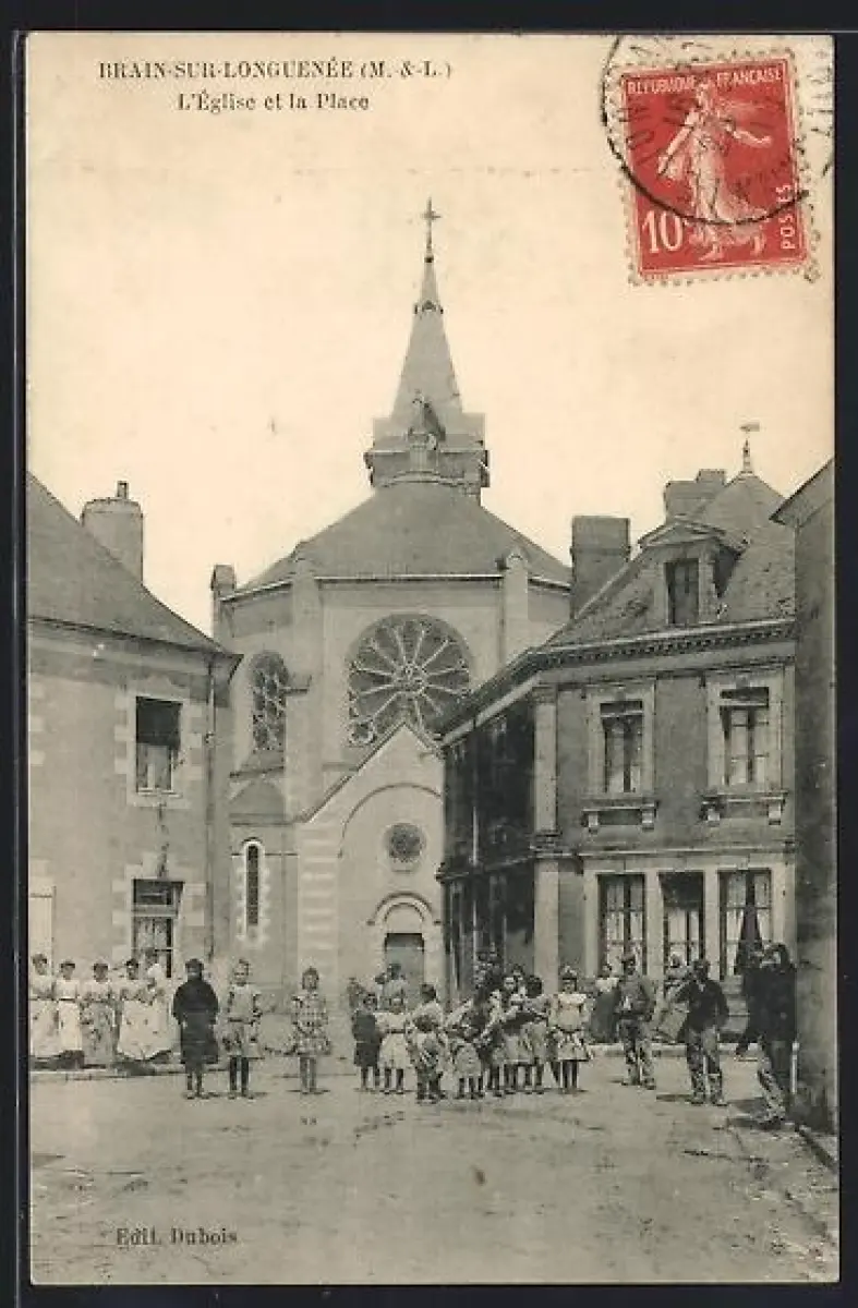 AK Brain-sur-Longuenée /M.-&-L., L`Église et la Place