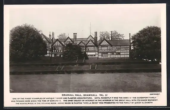 AK Bramhall, Bramall Hall, One of the finest examples of antique timber and plaster architecture