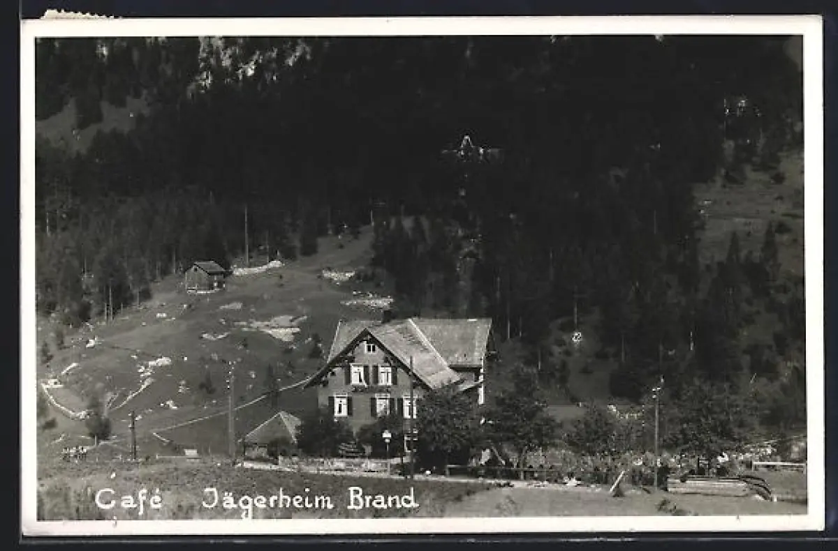 AK Brand, Café Jägerheim aus der Vogelschau