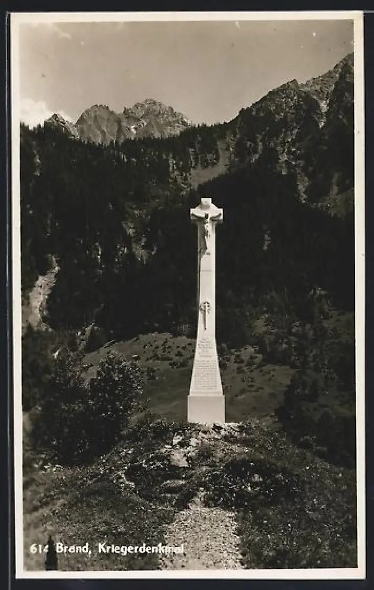 AK Brand, Kriegerdenkmal mit Gebirgspanorama
