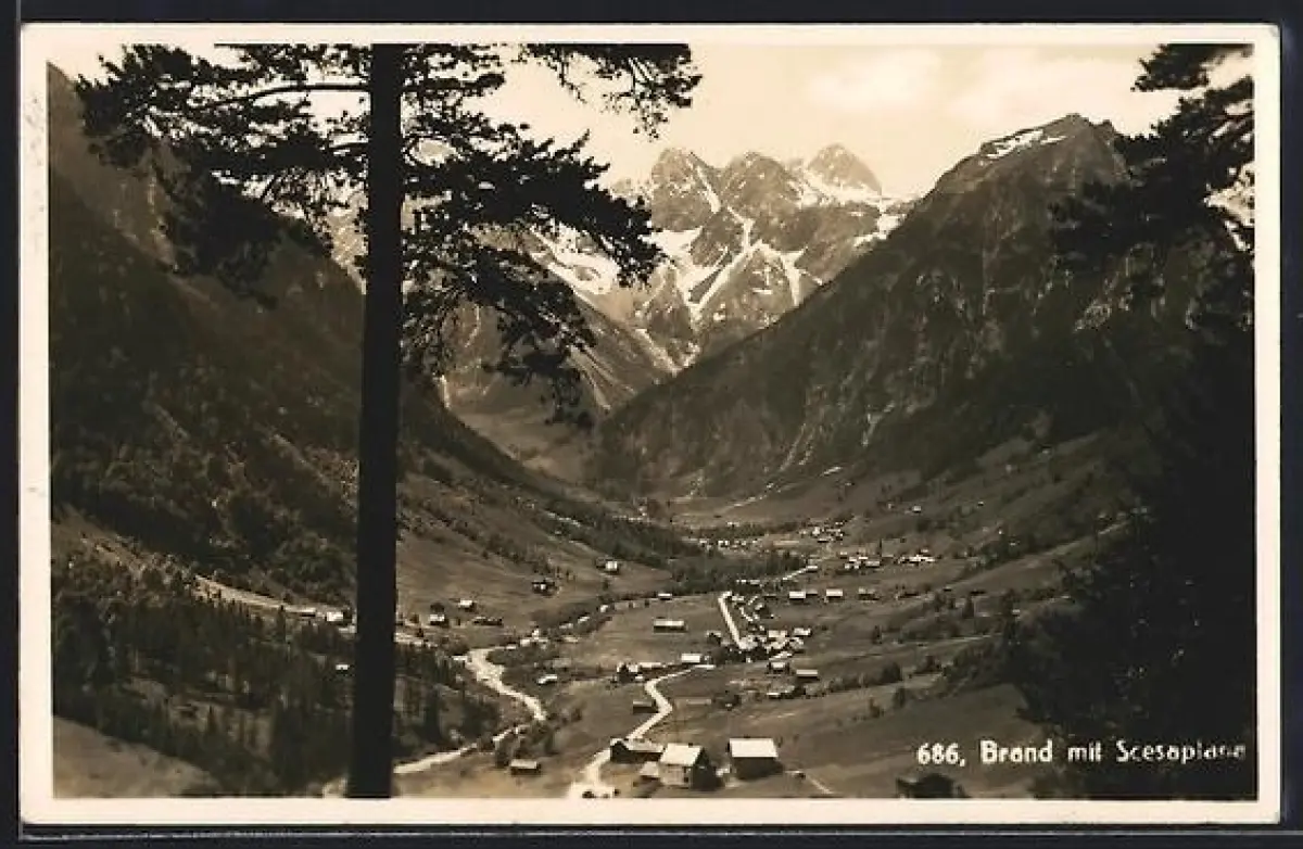 AK Brand, Ortsansicht mit Scesaplana und Gipfelpanorama