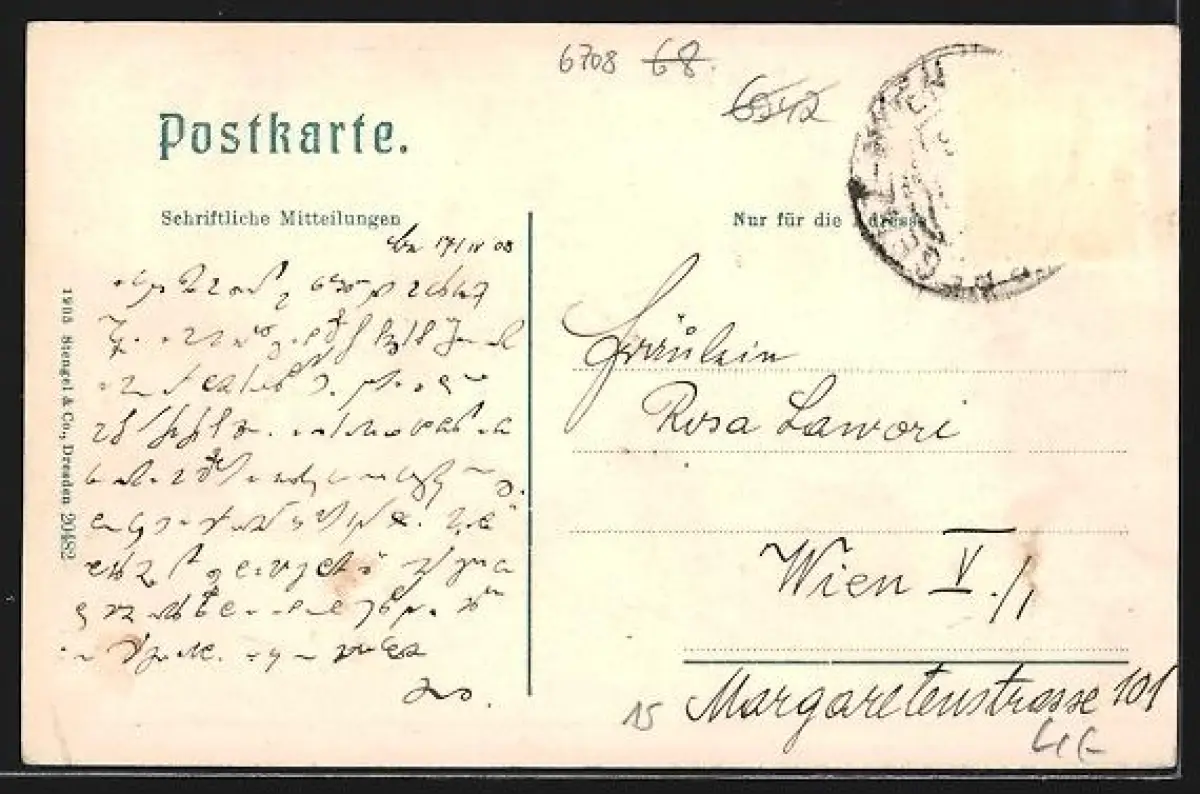alte Ansichtskarte, gelaufen, Briefmarke entfernt, guter Zustand