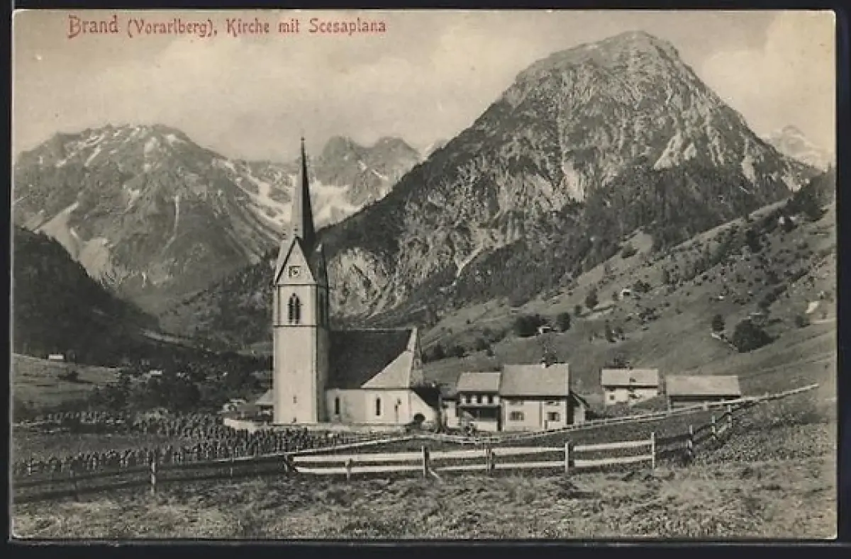 AK Brand /Vorarlberg, Kirche mit Secasplana