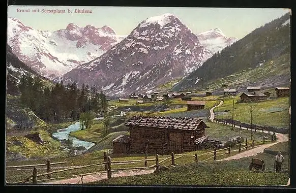 AK Brand b. Bludenz, Ortsansicht mit Fluss und Seesaplana